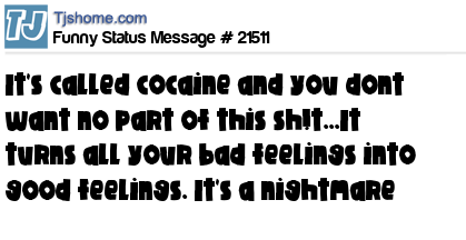 X is It's called cocaine and you dont want no part of this sh!t...It turns all your bad feelings into good feelings. It's a nightmare