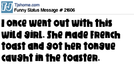 X says I once went out with this wild girl. She made French toast and got her tongue caught in the toaster.