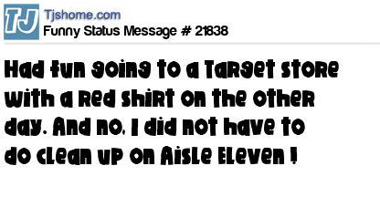 X had fun going to a Target store with a red shirt on the other day. And no, I did not have to do clean up on Aisle Eleven !