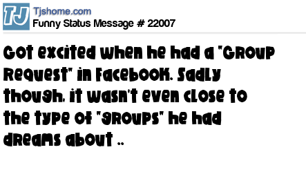 X got excited when he had a "Group Request" in Facebook. Sadly though, it wasn't even close to the type of "groups" he had dreams about ..