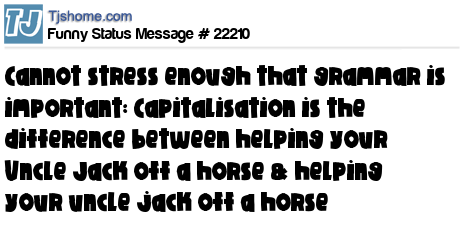 X cannot stress enough that grammar is important: Capitalisation is the difference between helping your Uncle Jack off a horse & helping your uncle jack off a horse