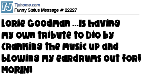 X Lorie Goodman ...Is having my own tribute to Dio by Cranking the music up and blowing my eardrums out for! MORIN!