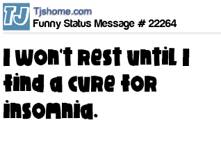 X I won't rest until I find a cure for insomnia.