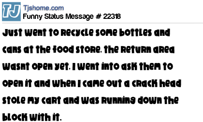 X is just went to recycle some bottles and cans at the food store, the return area wasnt open yet, I went into ask them to open it and when I came out a crack head stole my cart and was running down the block with it.