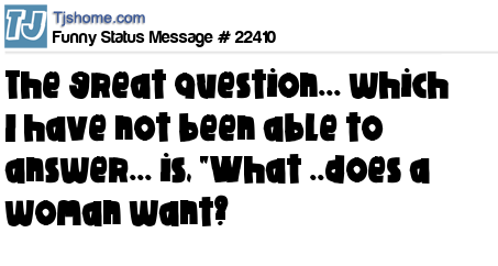 X says The great question... which I have not been able to answer... is, "What ..does a woman want?
