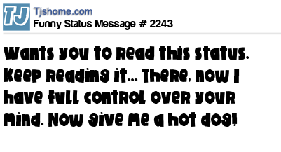 X wants you to read this status. Keep reading it... There, now I have full control over your mind. Now give me a hot dog!