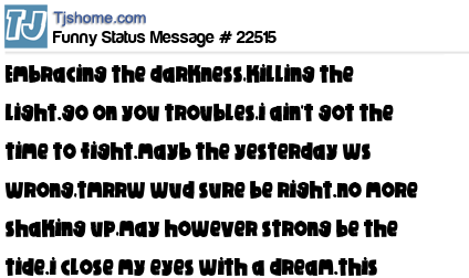 X is Embracing the darkness,killing the light.go on you troubles,i ain't got the time to fight.mayb the yesterday ws wrong,tmrrw wud sure be right.no more shaking up,may however strong be the tide.i close my eyes with a dream.this is misery's final night. . .