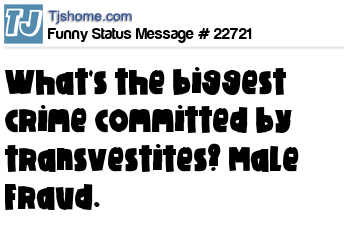 X What's the biggest crime committed by transvestites? Male Fraud.