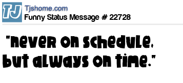 - # 83490 Anyway you can take down the "never on schedule, but always on time." comment