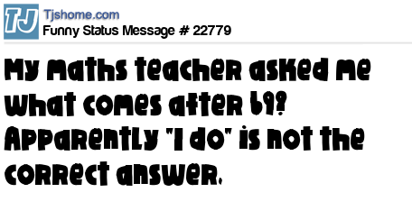 - # 52265 My maths teacher asked me what comes after 69? Apparently "I do" is not the correct answer