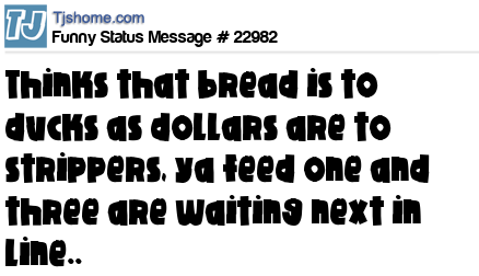 - # 122071 My wife thinks I’m at work. My boss thinks I’m home sick. These ducks think I’m awesome because I have the bread.