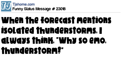 X When the forecast mentions isolated thunderstorms, I always think, "Why so emo, thunderstorm?"