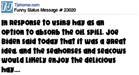 X In response to using hay as an option to absorb the oil spill, Joe Biden said today that it was a great idea, and the seahorses and seacows would likely enjoy the delicious hay....
