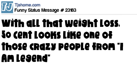 X With all that weight loss, 50 Cent looks like one of those crazy people from "I Am Legend"