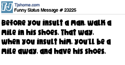 X is Before you insult a man, walk a mile in his shoes. That way, when you insult him, you'll be a mile away, and have his shoes.