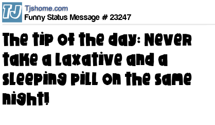 X has The tip of the day: Never take a laxative and a sleeping pill on the same night!