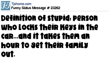 X  Definition of stupid; person who locks their keys in the car...and it takes them an hour to get their family out.