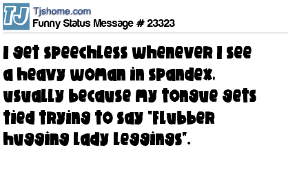 X I get speechless whenever I see a heavy woman in spandex, usually because my tongue gets tied trying to say "Flubber hugging lady leggings".