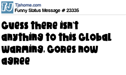- # 142047 ..... Al Gore keeps insisting that dropping global temperatures, out of season and record breaking snowfall around the globe are strong symptoms of global warming. My question to him is ..... Then ...... What would the symptoms of Global Cooling be?