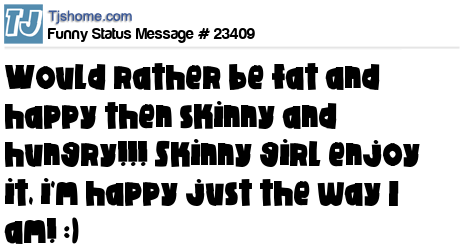 X would rather be fat and happy then skinny and hungry!!! Skinny girl enjoy it, i'm happy just the way I am! :)