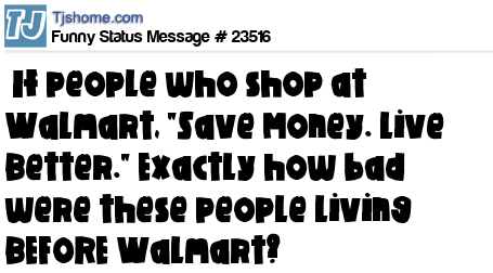 - # 145456 If people who shop at Walmart, “Save Money. Live Better.” Exactly how bad were these people living BEFORE Walmart?
