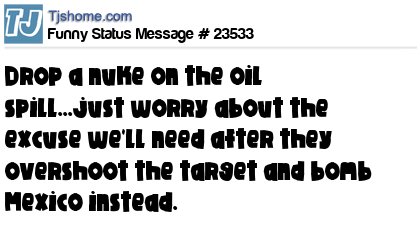 X says Drop a nuke on the oil spill...just worry about the excuse we'll need after they overshoot the target and bomb Mexico instead.