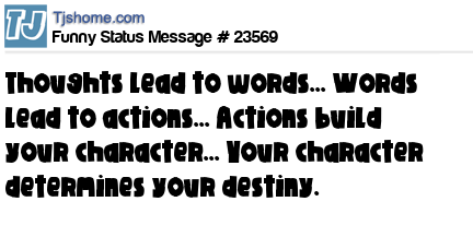 X Thoughts lead to words... Words lead to actions... Actions build your character... Your character determines your destiny.