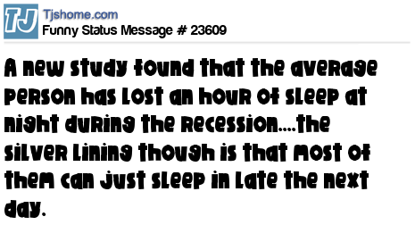 X says A new study found that the average person has lost an hour of sleep at night during the recession....the silver lining though is that most of them can just sleep in late the next day.