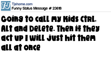 - # 124602 I want to have 3 kids and name them Ctrl, Alt and Delete. Then when they mess up I will just hit them all at once.