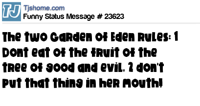 - # 161645 God saying to Eve "You must not eat fruit from the tree that is in the middle of the garden, and you must not touch it" was prove that even he makes mistakes #talkingtoawoman"