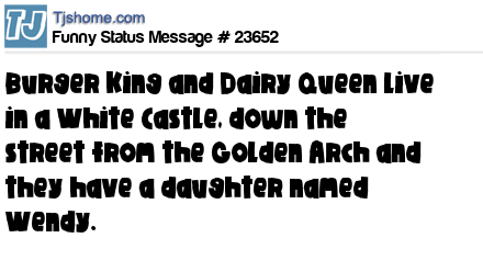 X Burger King and Dairy Queen live in a White Castle, down the street from the Golden Arch and they have a daughter named Wendy.