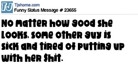 X says No matter how good she looks, some other guy is sick and tired of putting up with her $hit.