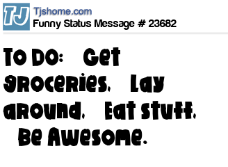 X To DO: ☑ Get groceries, ☑ Lay around, ☑ Eat stuff, ☑ Be Awesome.