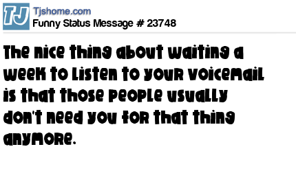 X The nice thing about waiting a week to listen to your voicemail is that those people usually don't need you for that thing anymore.