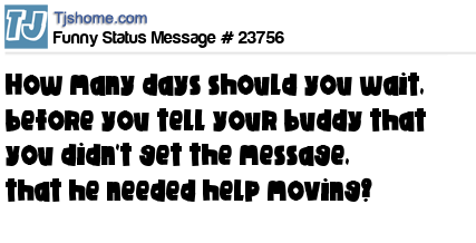 X is How many days should you wait, before you tell your buddy that you didn't get the message, that he needed help moving?