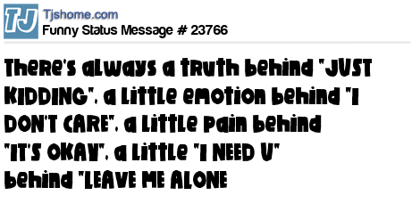 - # 92297 there's always......."truth" behind "JK"... Emotion behind "I DONT CARE"... Pain behind "IT'S OK" & "I need you" behind "LEAVE ME ALONE"......