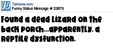 X  found a dead lizard on the back porch...apparently, a reptile dysfunction.