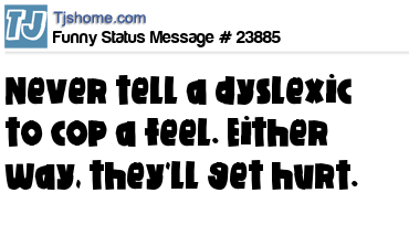 X says Never tell a dyslexic to cop a feel. Either way, they'll get hurt.