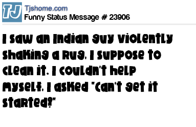 X is I saw an Indian guy violently shaking a rug, I suppose to clean it. I couldn't help myself, I asked "Can't get it started?"