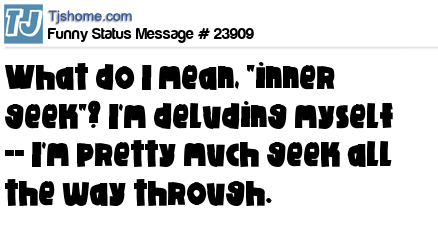X  What do I mean, "inner geek"? I'm deluding myself -- I'm pretty much geek all the way through.