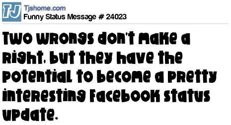 X Two wrongs don't make a right, but they have the potential to become a pretty interesting Facebook status update.