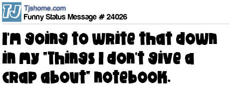 X I'm going to write that down in my "Things I don't give a crap about" notebook.