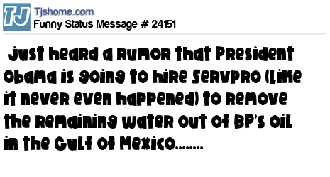 X has just heard a rumor that President Obama is going to hire Servpro (Like it never even happened) to remove the remaining water out of BP's oil in the Gulf of Mexico........