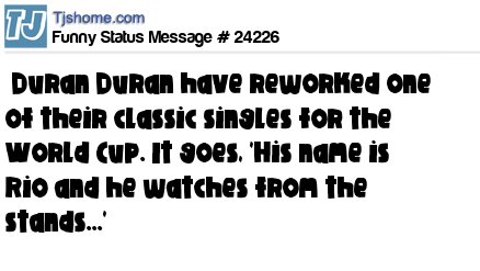 X Duran Duran have reworked one of their classic singles for the World Cup. It goes, 'His name is Rio and he watches from the stands...'