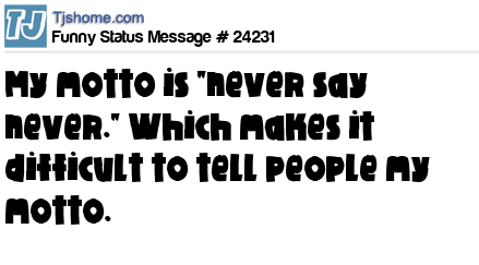 - # 16508 My motto is "Never say never." Which makes it difficult to tell people my motto...