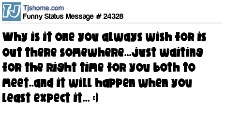 X says Why is it one you always wish for is out there somewhere...just waiting for the right time for you both to meet..and it will happen when you least expect it... :)