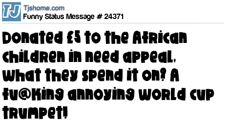 X has donated £5 to the African children in need appeal, what they spend it on? A fu@king annoying world cup trumpet!