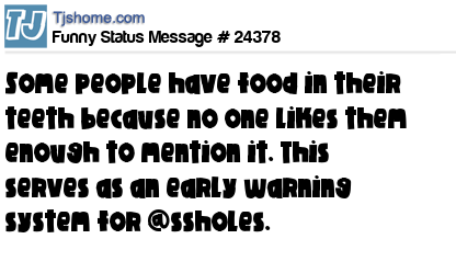 X Some people have food in their teeth because no one likes them enough to mention it. This serves as an early warning system for @ssholes.