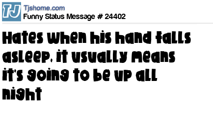 - # 26431 I hate when my foot falls asleep... it usually means it's going to be up all night!