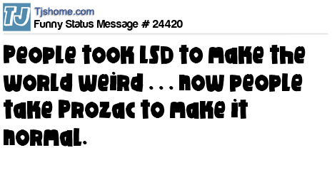 - # 26788 In the 1960's, people took acid to make the world weird... Now the world is Weird and people take Prozac to make it normal..